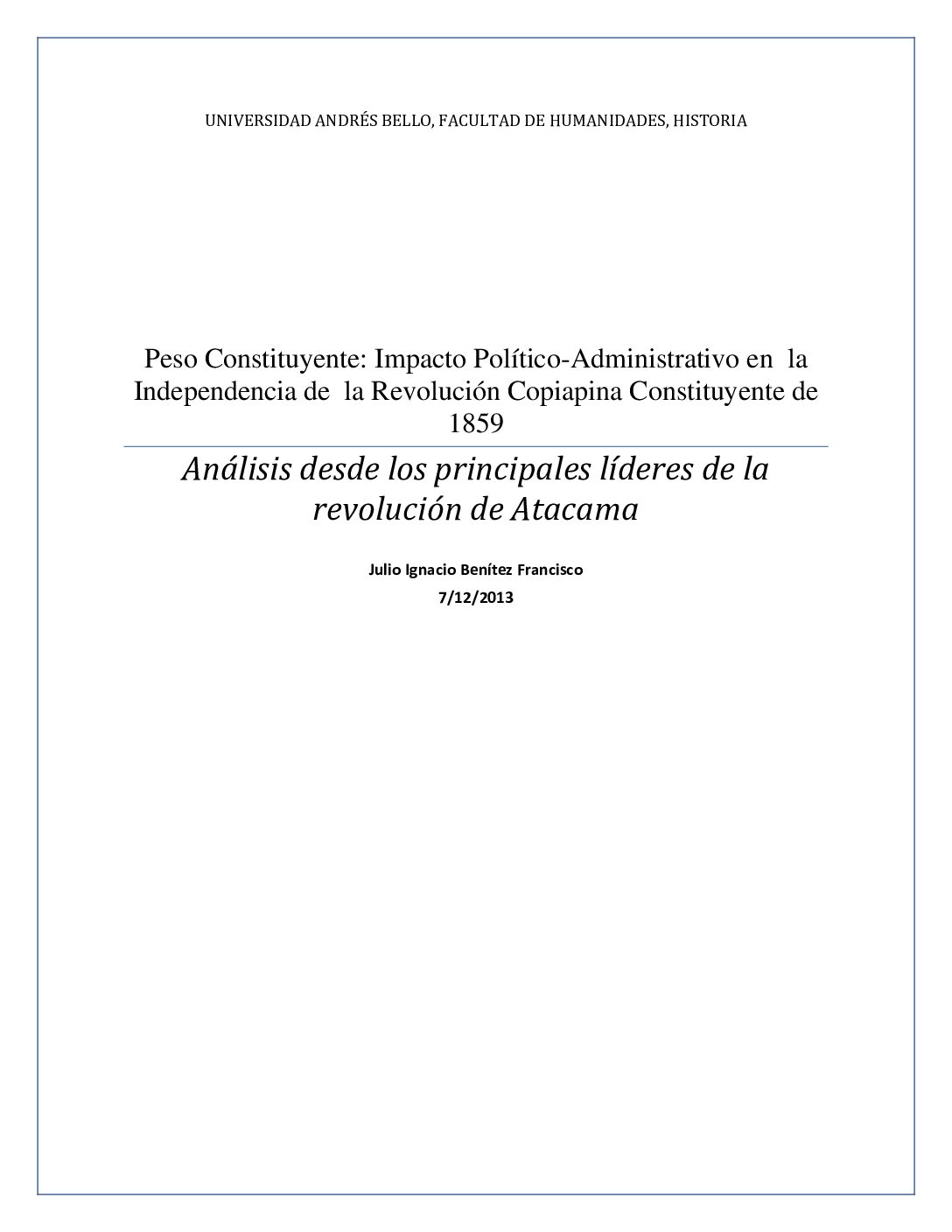 Peso constituyente: impacto político-administrativo en la independencia de la revolución copiapina constituyente de 1859. Análisis desde los principales líderes de la revolución de Atacama