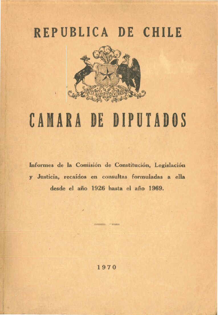 Informes de la Comisión de Constitución, Legislación y Justicia, recaídos en consultas formuladas a ella desde el año 1926 hasta el año 1969