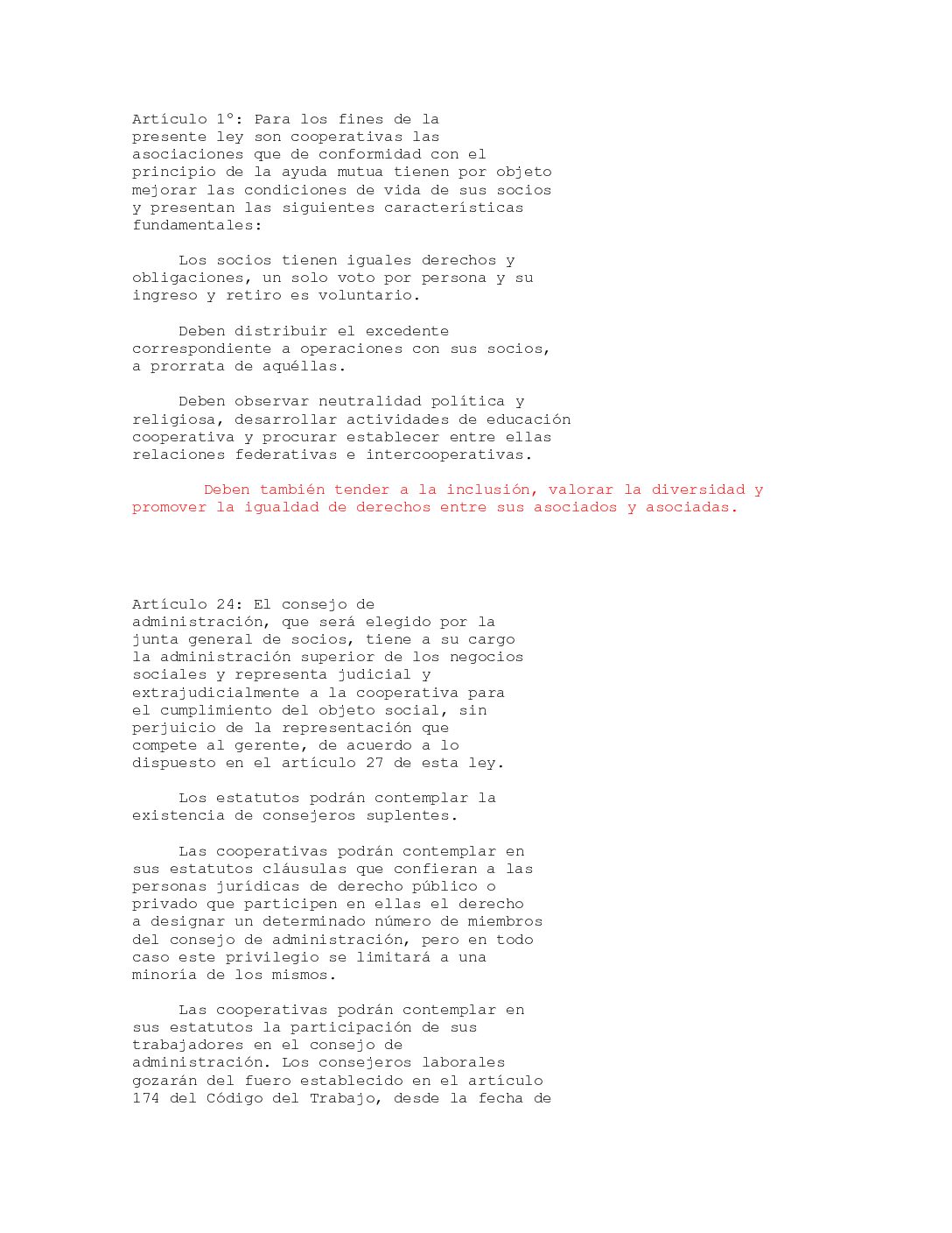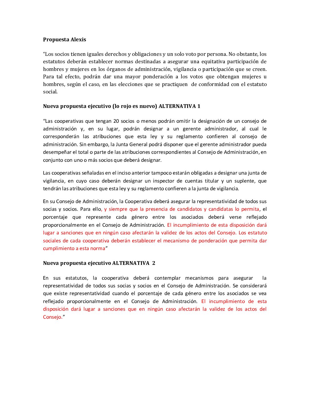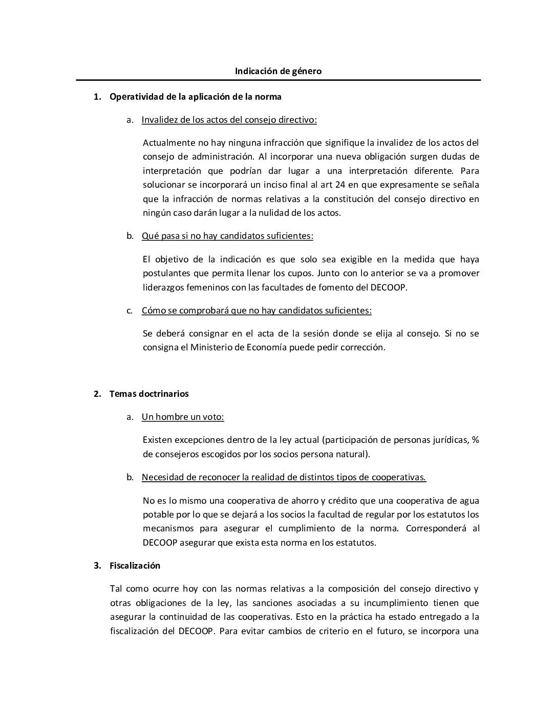 Propuesta de nueva redacción Indicación de Género Proyecto de Ley de Cooperativas (II)