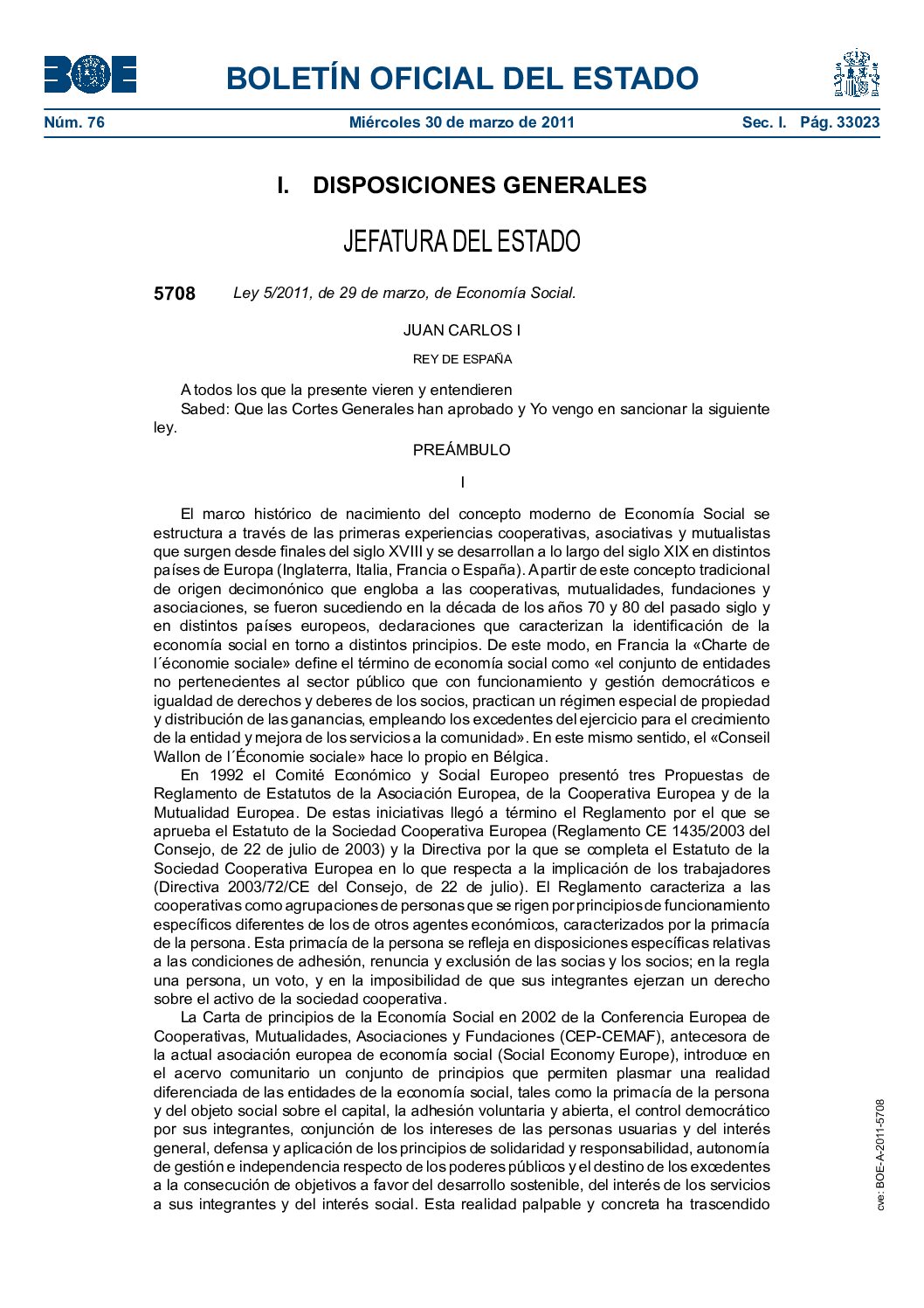 Ley 5/2011, de 29 de marzo, de Economía Social