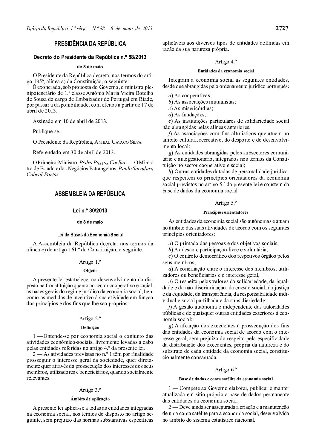 Decreto do Presidente da República n.º 58/2013 de 8 de maio de Portugal