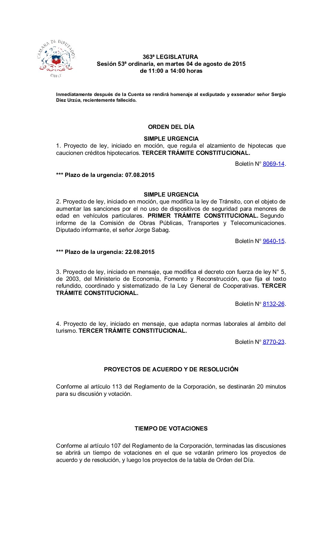 363ª legislatura. Sesión 53ª ordinaria, en martes 04 de agosto de 2015 de 11:00 a 14:00 horas