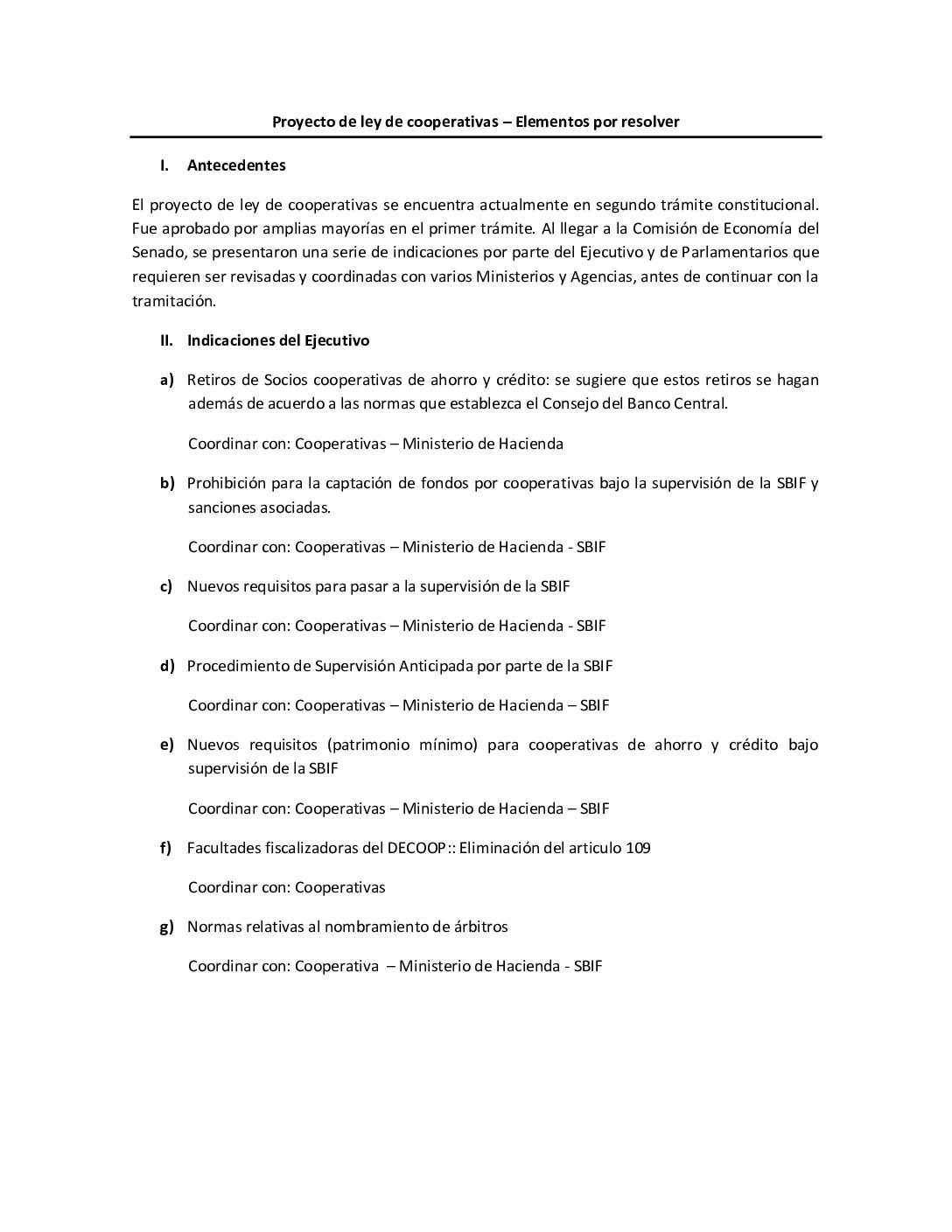 Proyecto de ley de cooperativas – Elementos por resolver