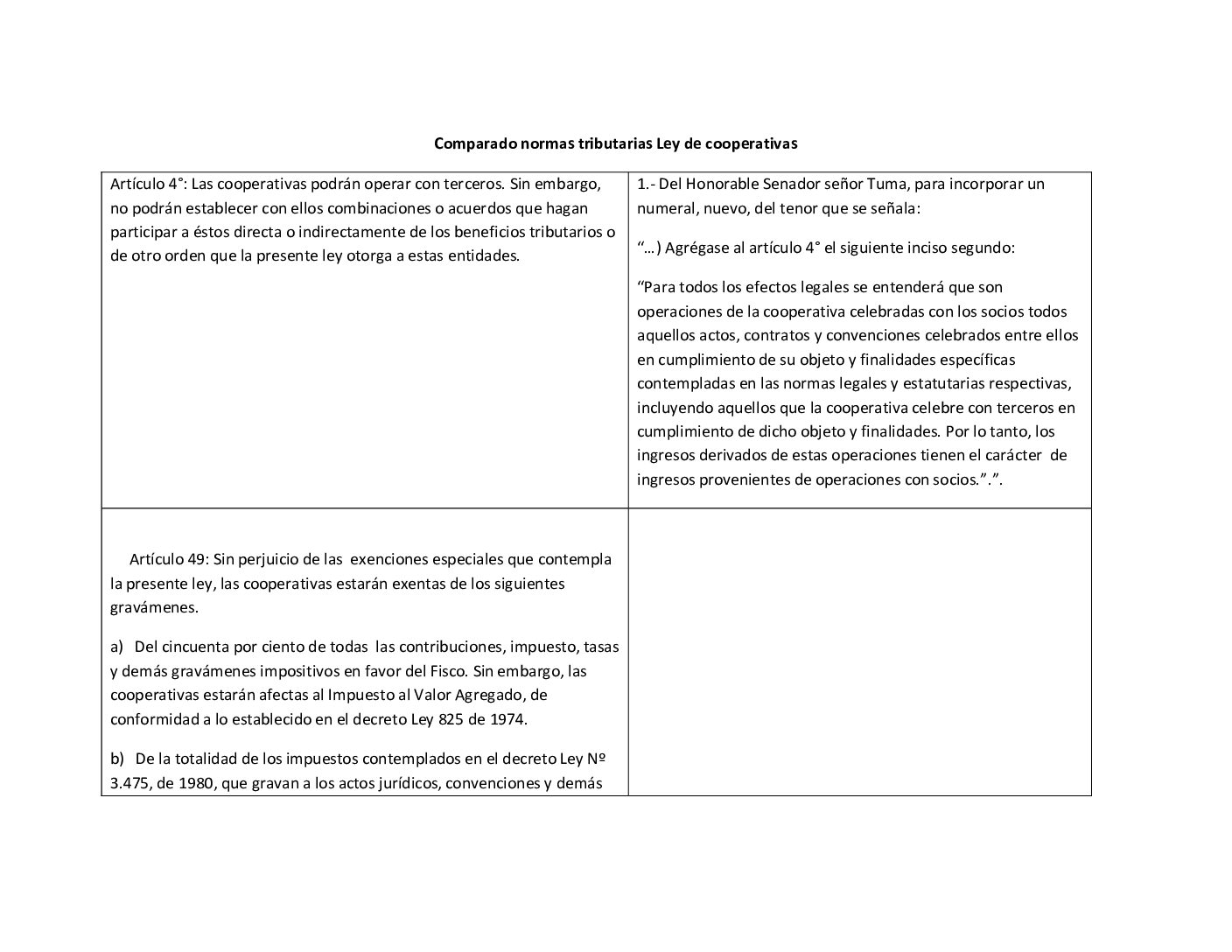 Comparado normas tributarias Ley de cooperativas