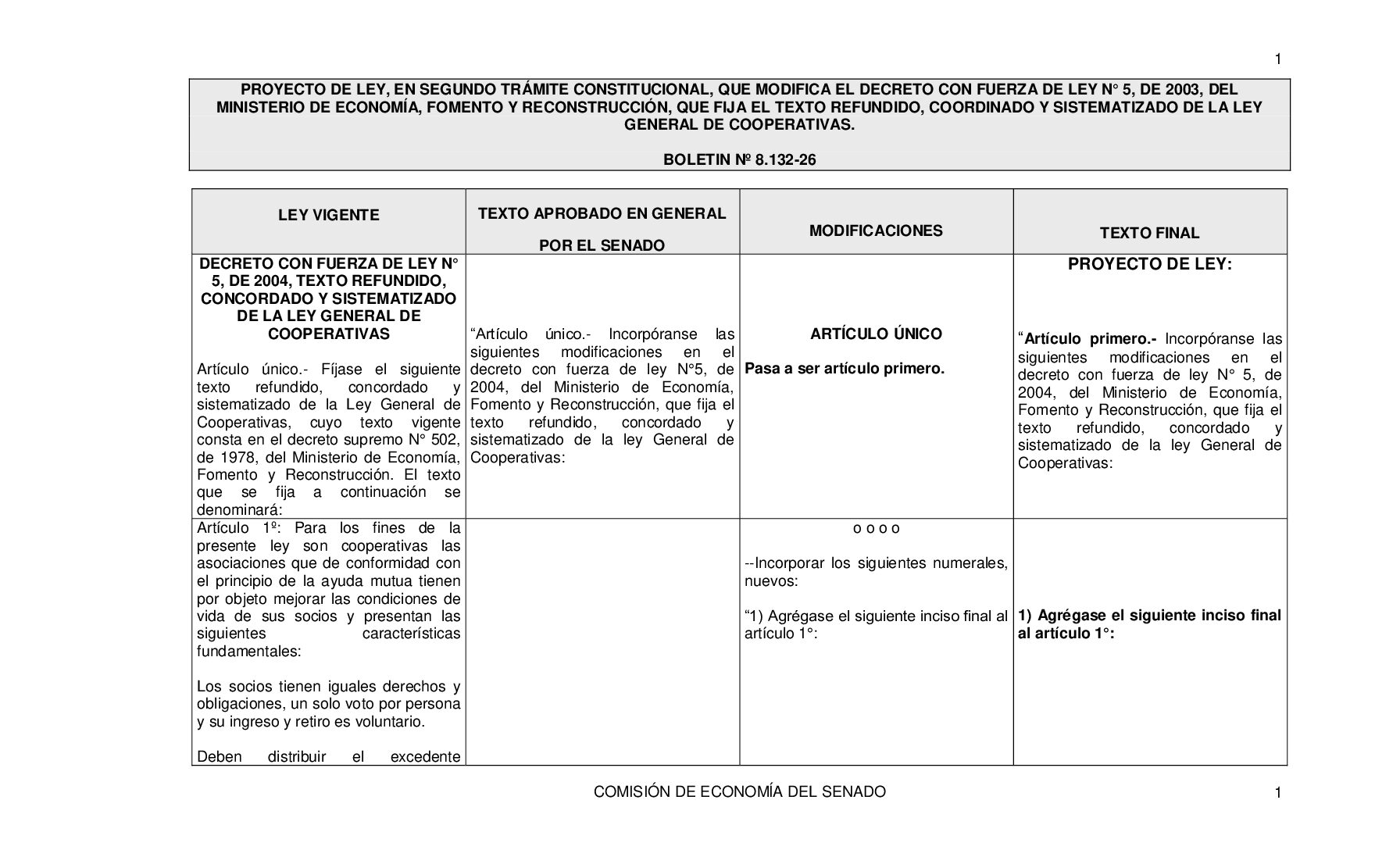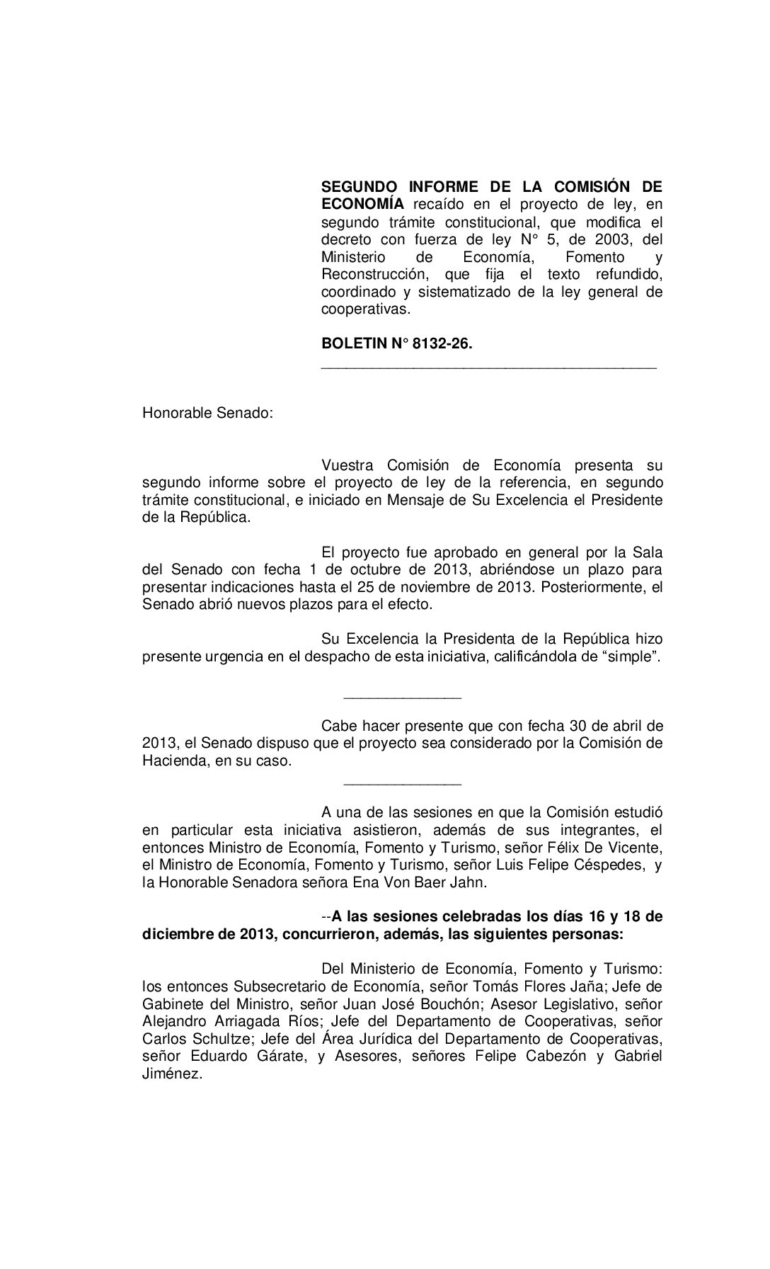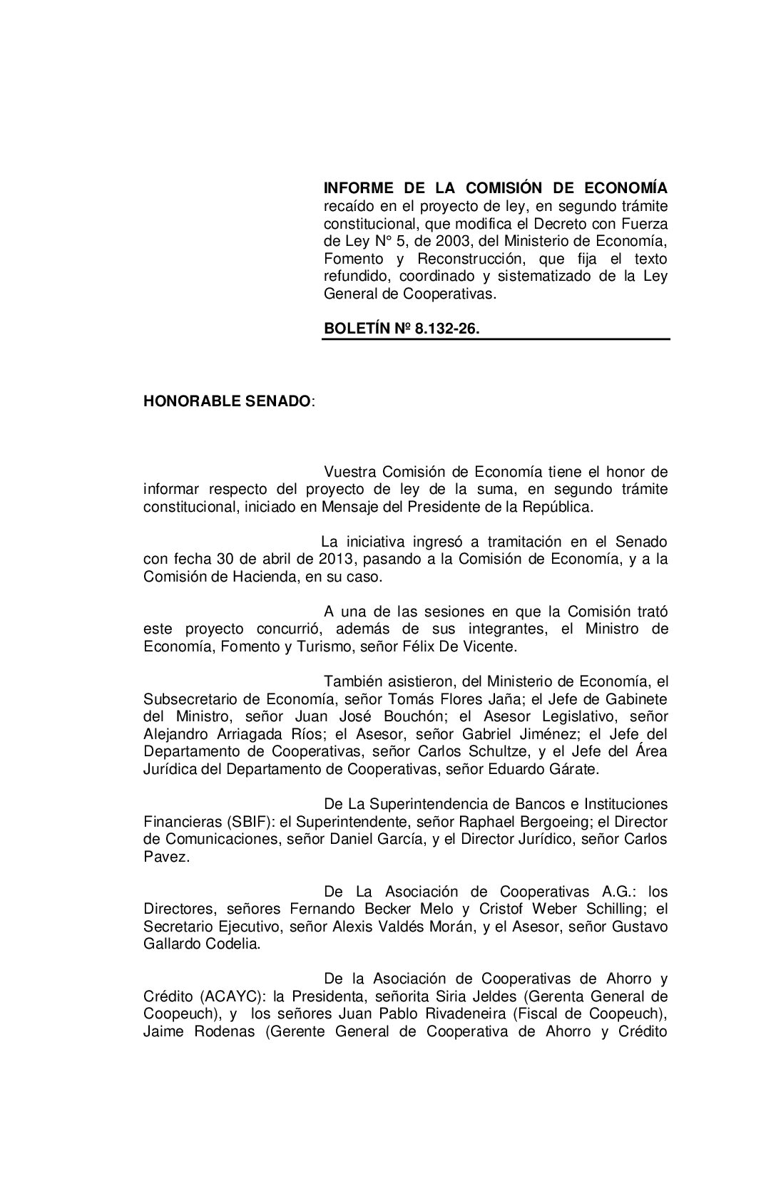 Informe de la Comisión de Economía recaído en el proyecto de ley, en segundo trámite constitucional, que modifica el Decreto con Fuerza de Ley N° 5, de 2003, del Ministerio de Economía, Fomento y Reconstrucción, que fija el texto refundido, coordinado y sistematizado de la Ley General de Cooperativas. Boletín Nº 8.132-26