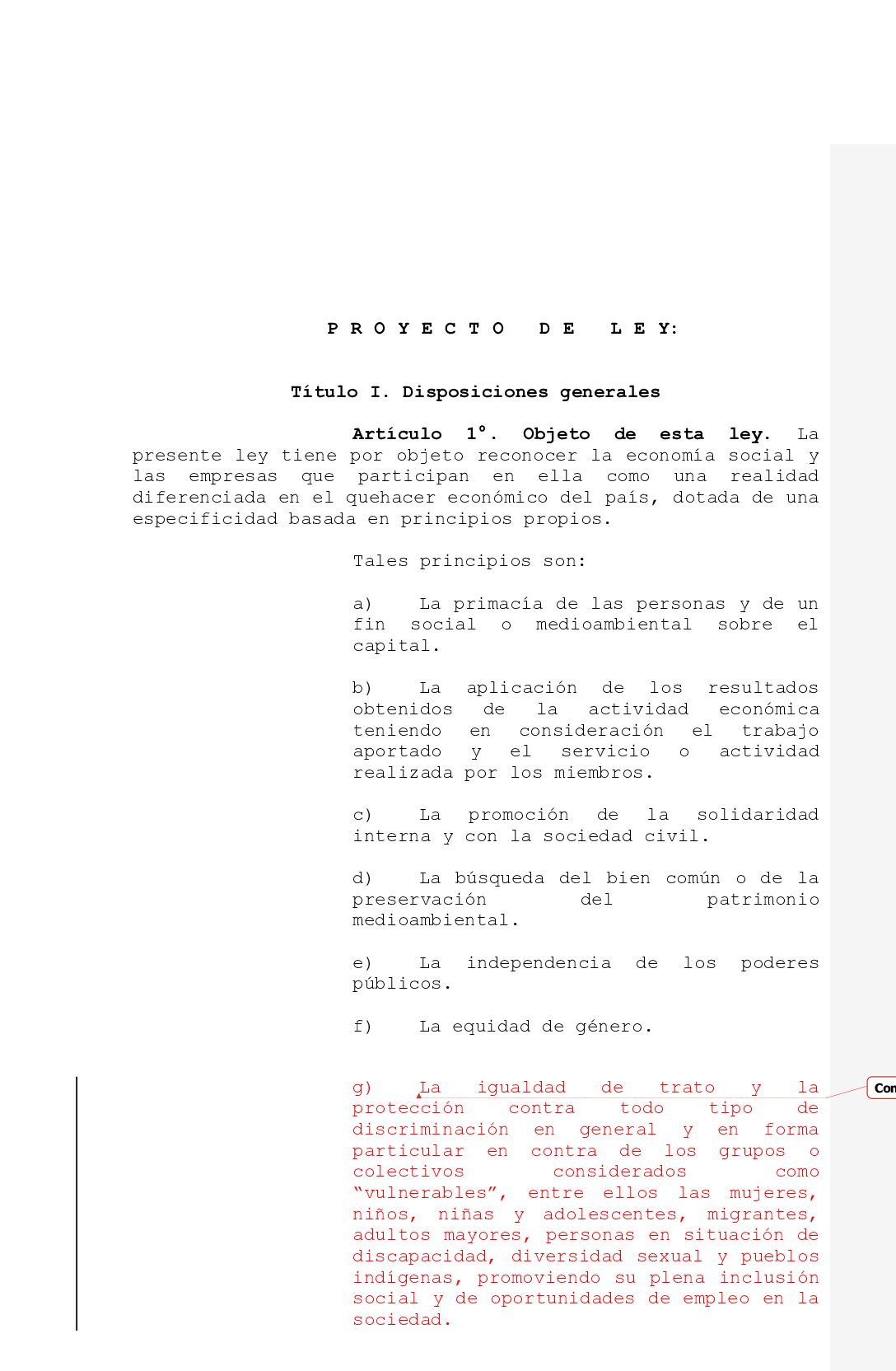 Borrador III: comentarios de SENADIS al proyecto de Ley de economía social