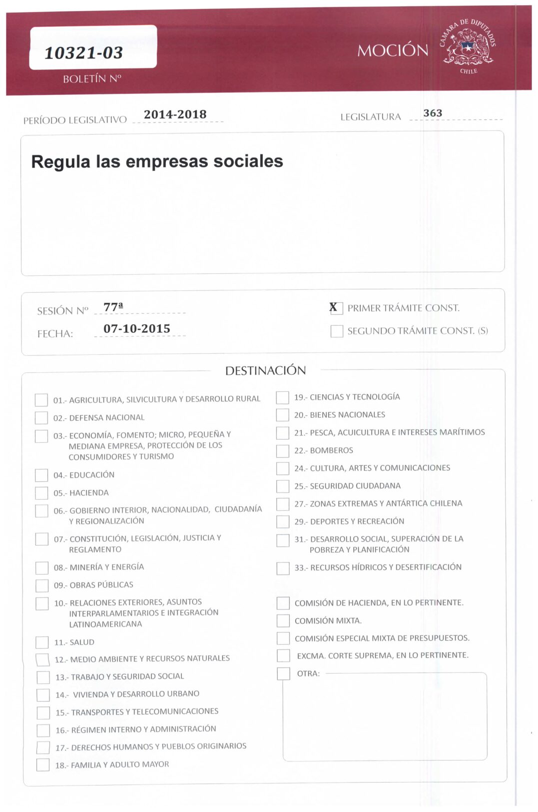 Boletín nº. 10321-03. Legislatura 363. Regula las empresas sociales
