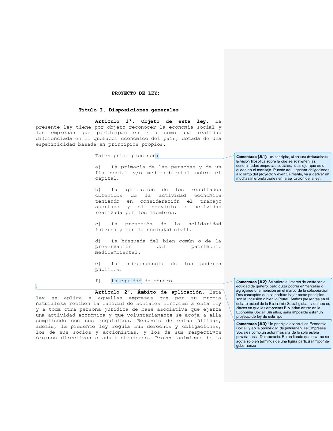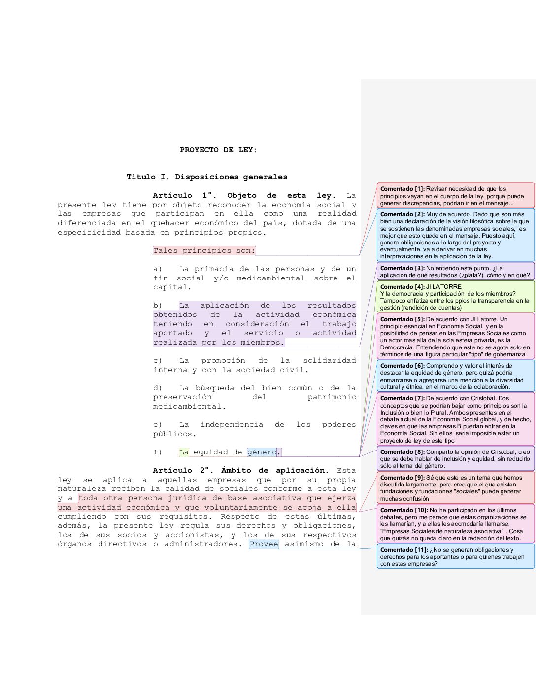 Borrador I: comentarios al proyecto de Ley de economía social