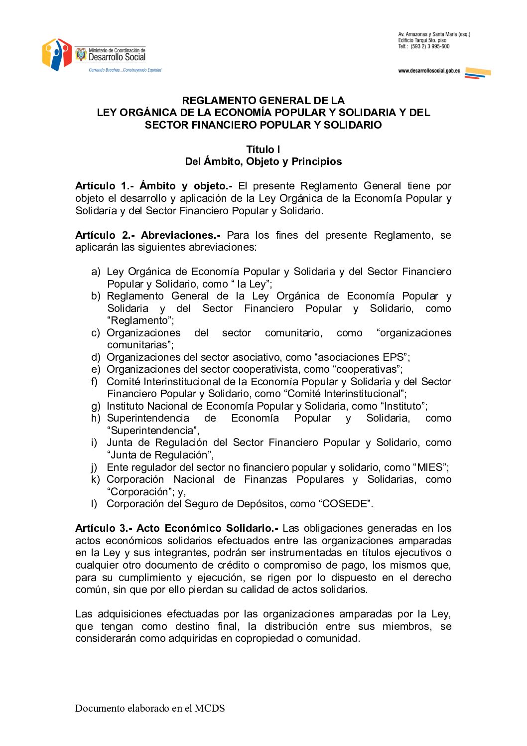 Reglamento general de la Ley orgánica de la economía popular y solidaria y del sector financiero popular y solidario