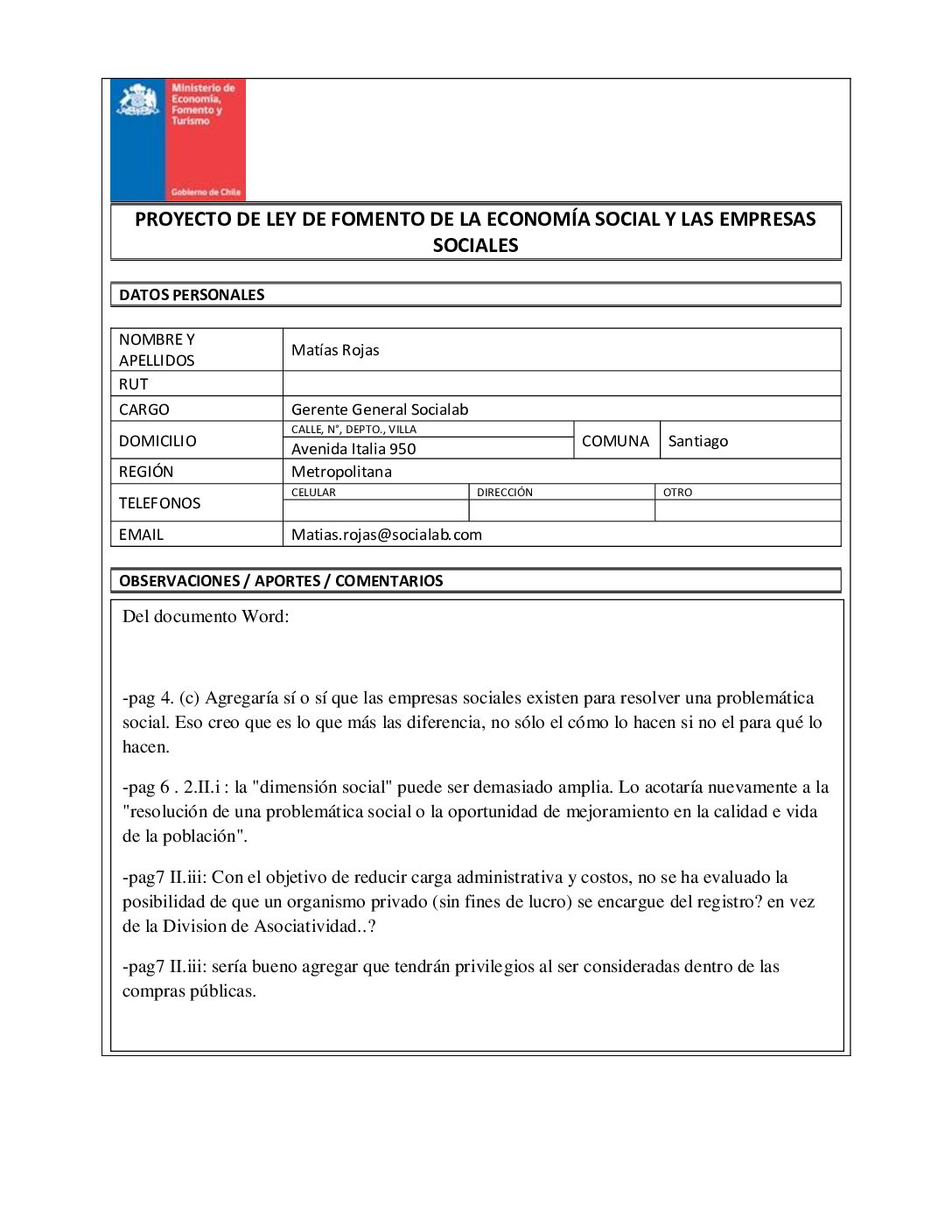Indicaciones de género al proyecto de ley de fomento de la economía social y las empresas sociales (V)