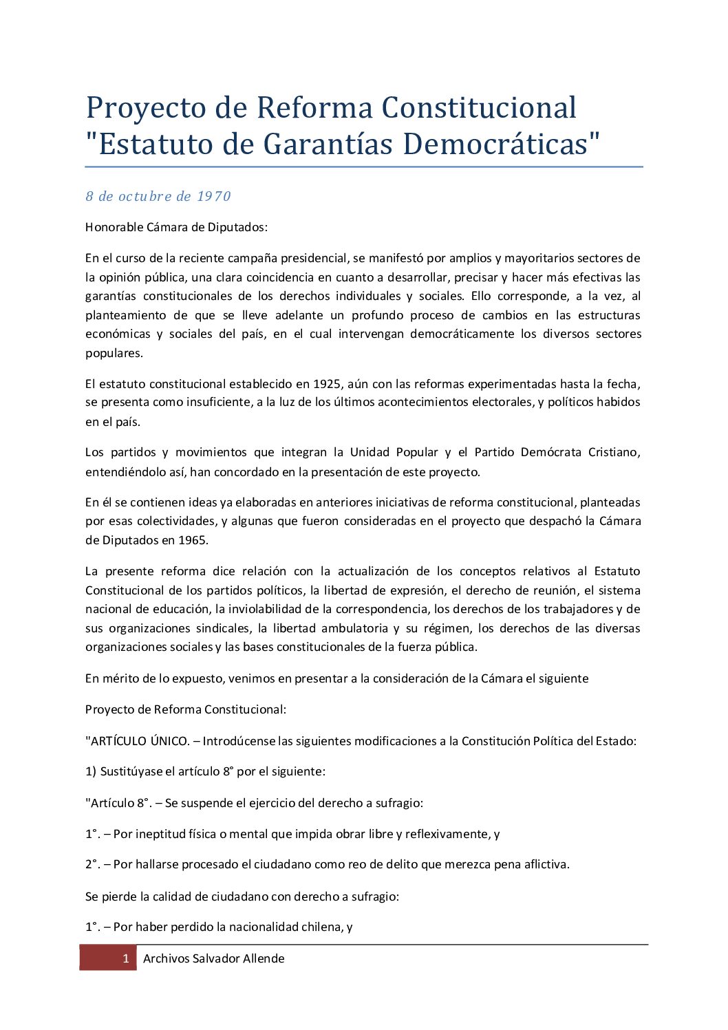 Proyecto de Reforma Constitucional “Estatuto de Garantías Democráticas”